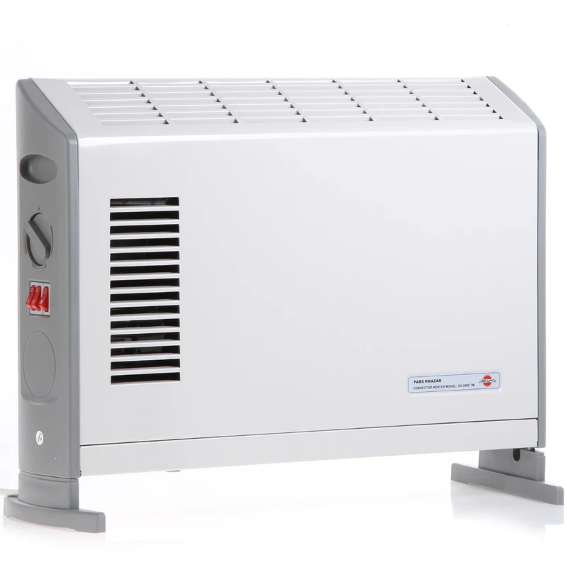 بخاری کانوکتور پارس خزر مدل CH2000TM دارای ترموستات تنظیم دما و سوئیچ چندحالتی جهت انتخاب توان گرمایی موردنظر است و محیط را به دمای دلخواه میرساند. در این بخاری المنتهای مخصوص حرارتی با طول عمر بسیار زیاد و قطعات پلاستیکی مقاوم دربرابر حرارت استفاده شده است. این بخاری دیواری/زمینی به سیستم قطعکن خودکار (فیوز حرارتی) هم مجهز است. در صورتی که درجه حرارت بخاری به هر دلیلی مثلا سقوط روی زمین یا بستهشدن راههای خروجی هوای گرم بیش از حد مجاز بالا برود، این سیستم به صورت خودکار جریان برق را قطع میکند و بخاری خاموش میشود. ایمنی این دستگاه بسیار بالاست. این محصول همچنین سیم اتصال زمین برای ایمنی بیشتر دارد. ابعاد این بخاری 550×450×120 است.